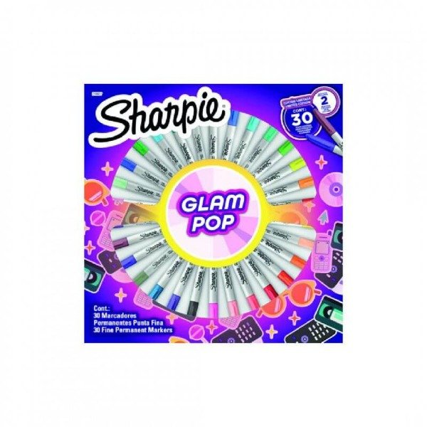 MARCADOR SHARPIE GLAM POP RULETA X 30 COLORES